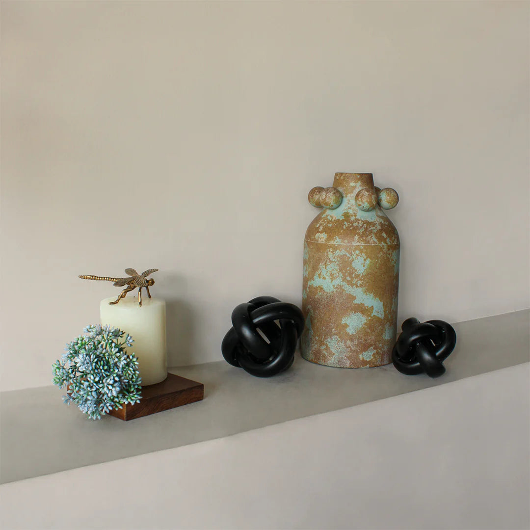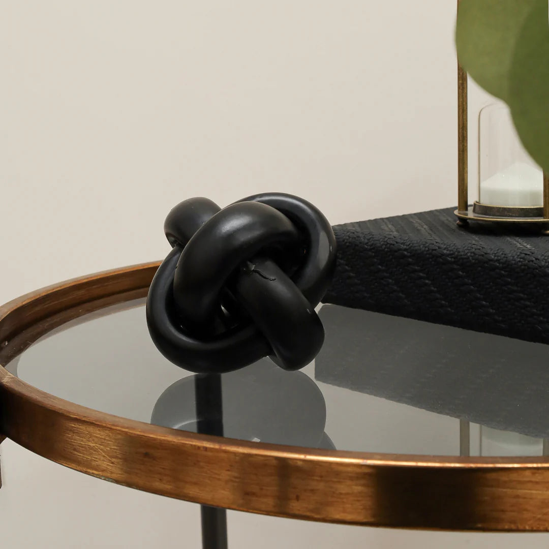 Modernos adornos en forma de nudos negros, la chica es de 10cm y la grande es de 12.5cm