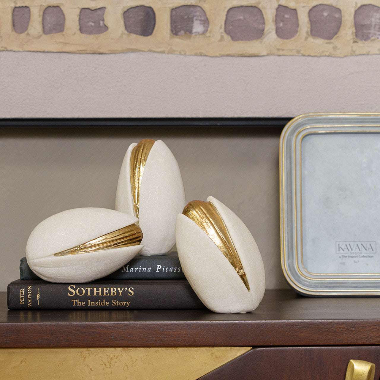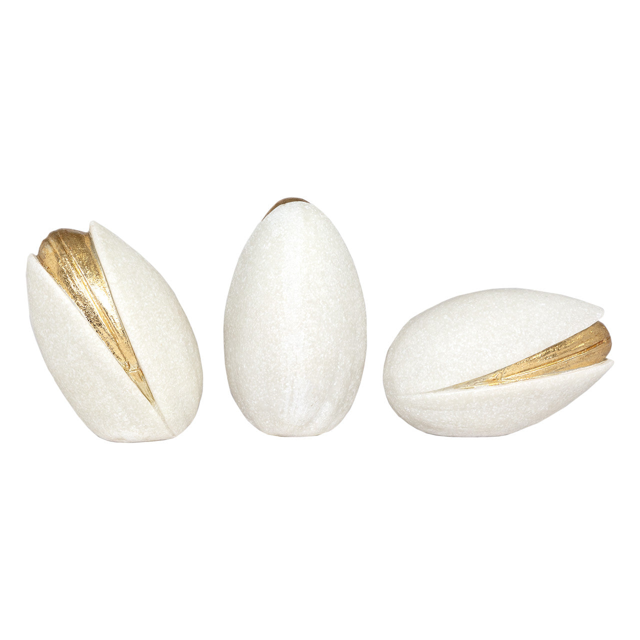 Moderno set de 3 pistaches. Resina polvo de cuarzo. 7.5cm x 13cm cada uno.