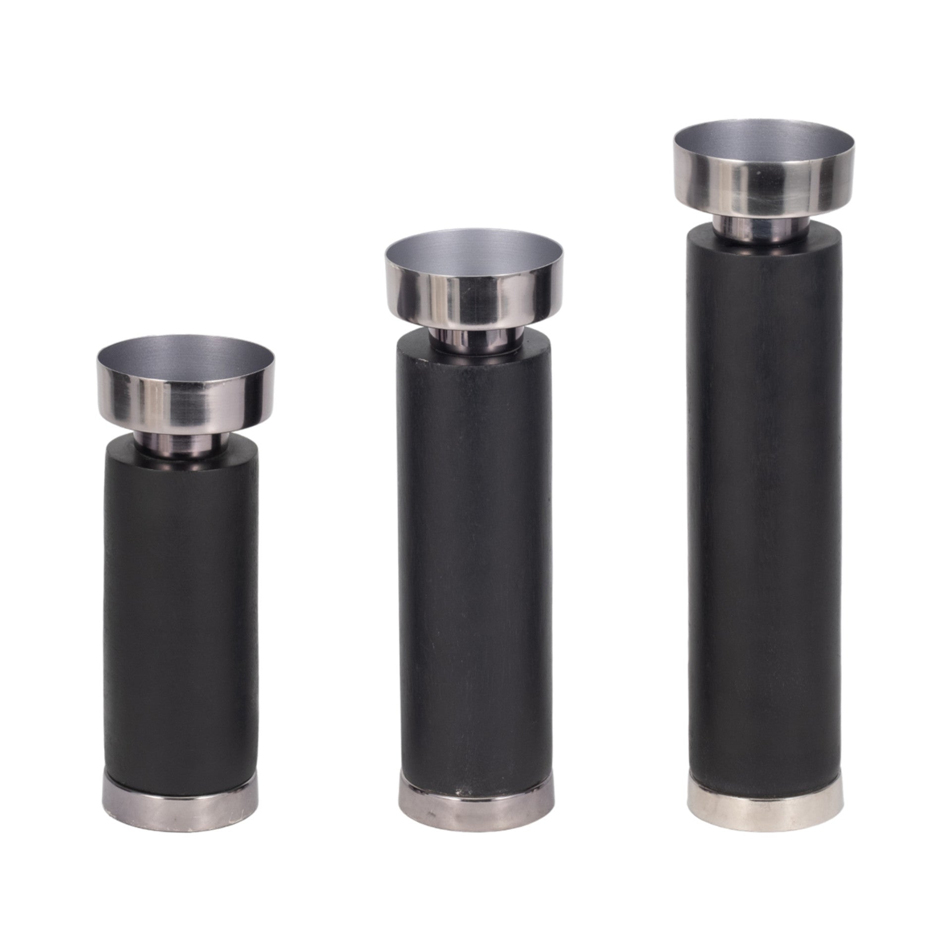 Elegantes candelabros de madera de mando en color negro y acero en color plateado. 20cm, 25cm 30cm