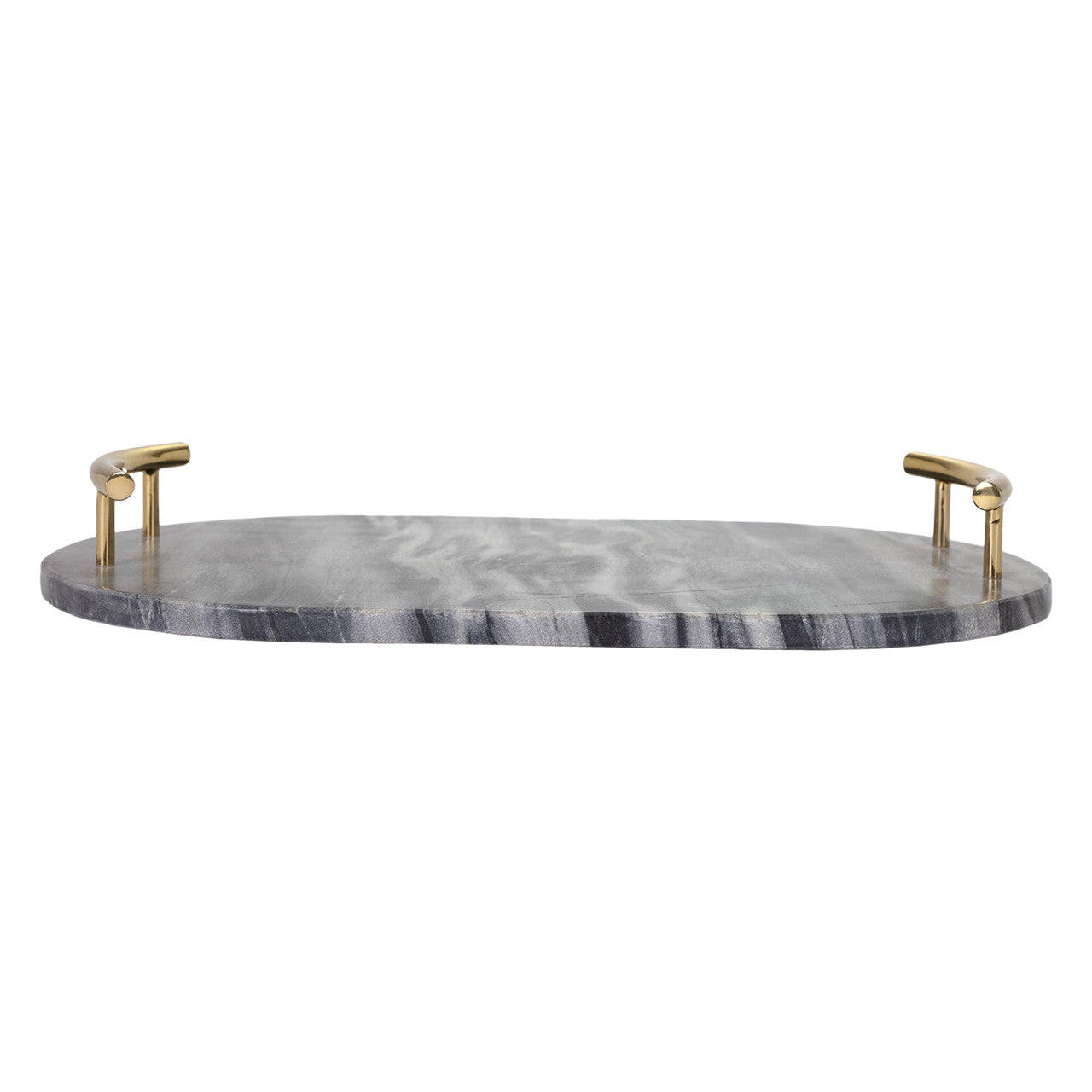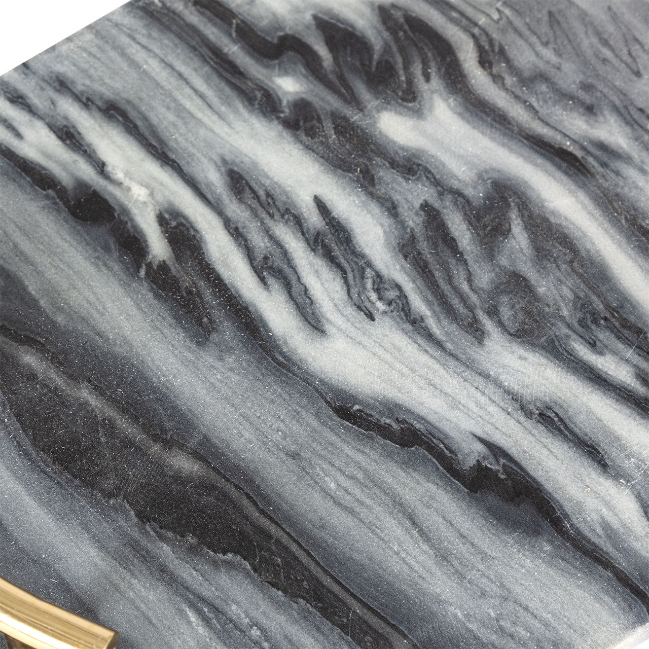 Hermosa y moderna charola de servicio de mármol negro y blanco. 46cm de largo.
