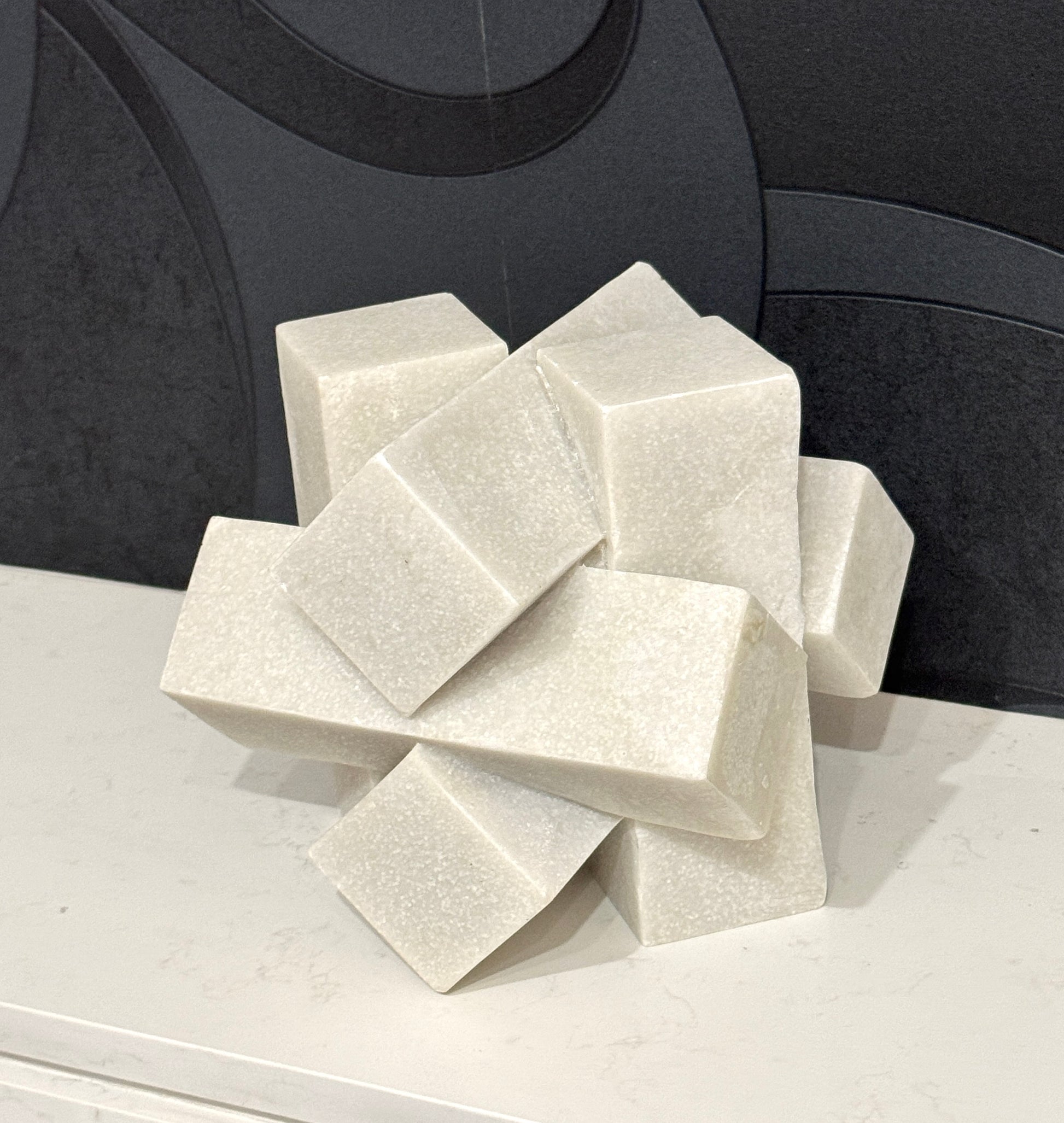 Moderna y contemporánea escultura geométrica. Resina con polvo de cuarzo. 19cm x 19cm x 19cm