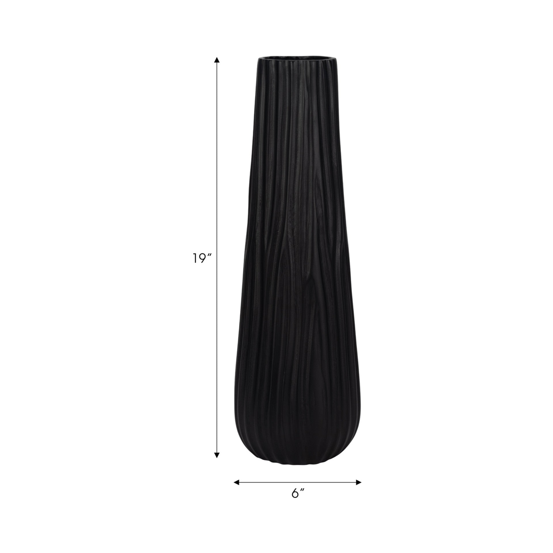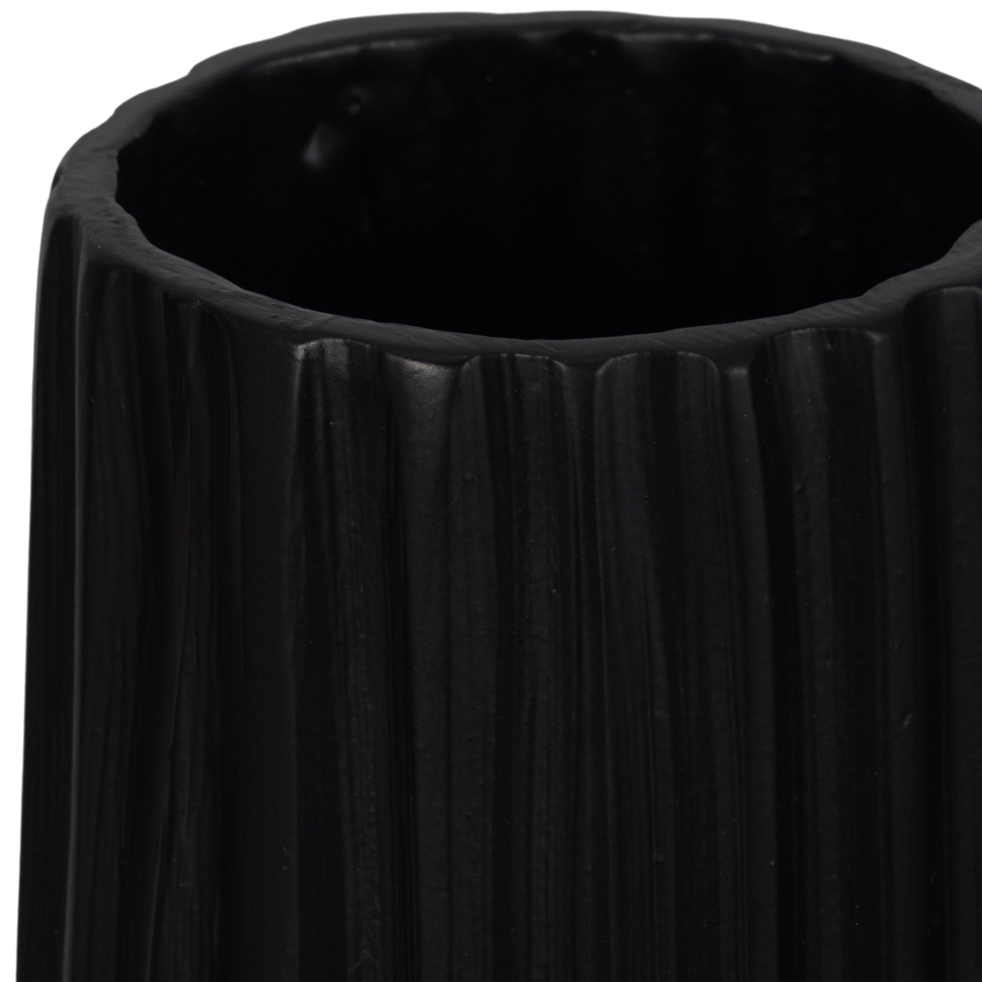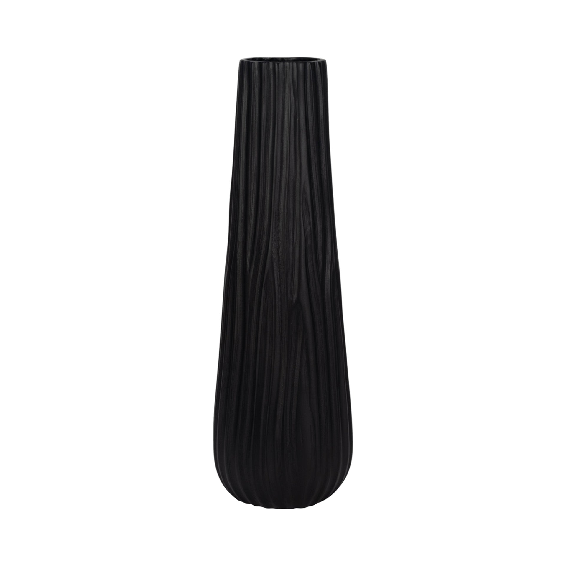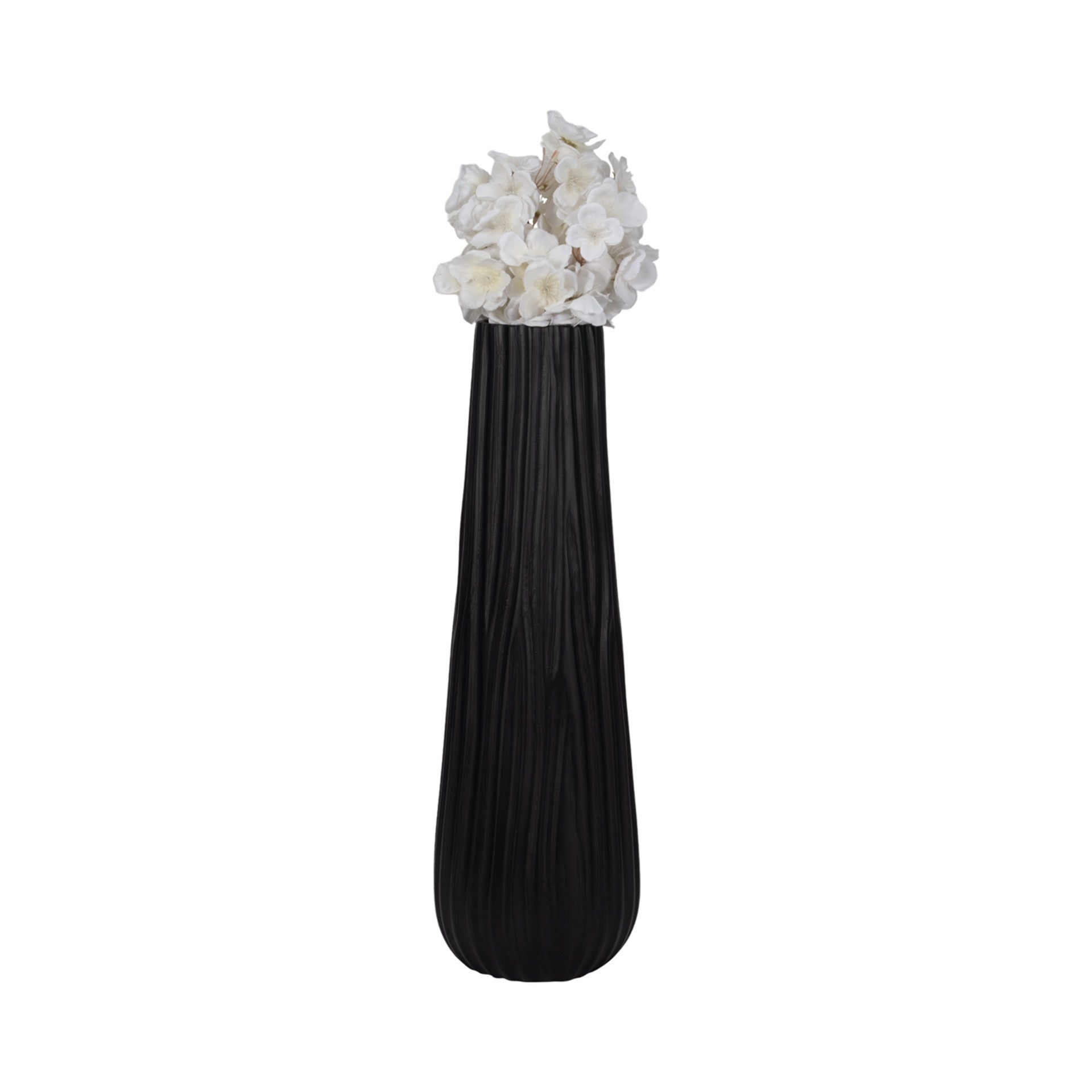 Moderno y casual florero negro ondulado con acabado cepillado. Mide 48cm de alto.