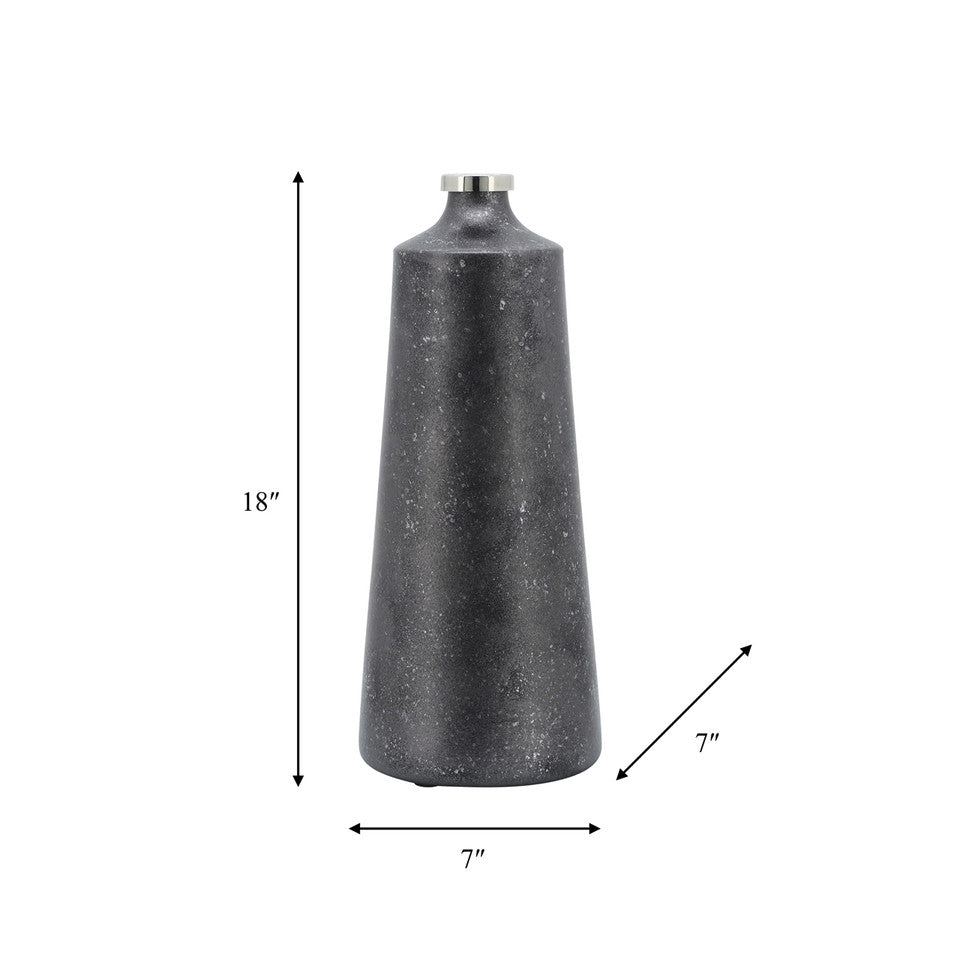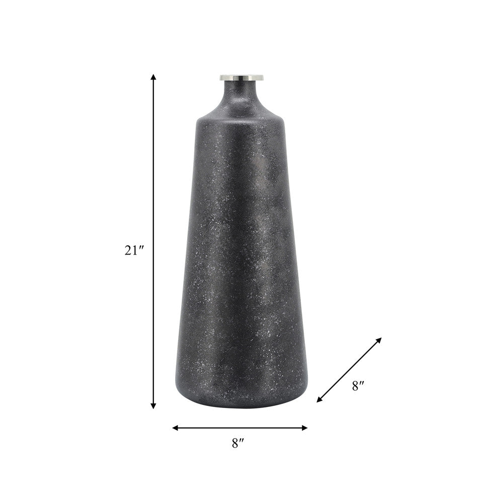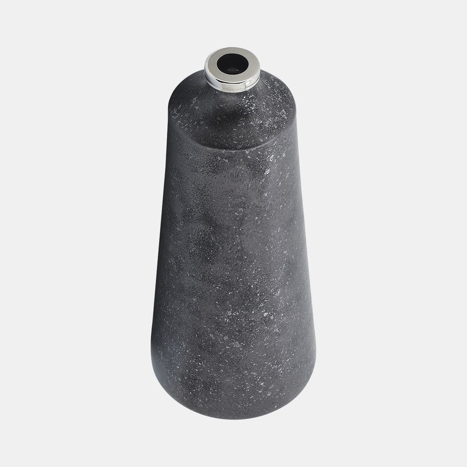 Preciosos floreros negros con textura y la orilla metálica en dorado. El chico mide 46cm de altura, el grande mide 53cm de alto.