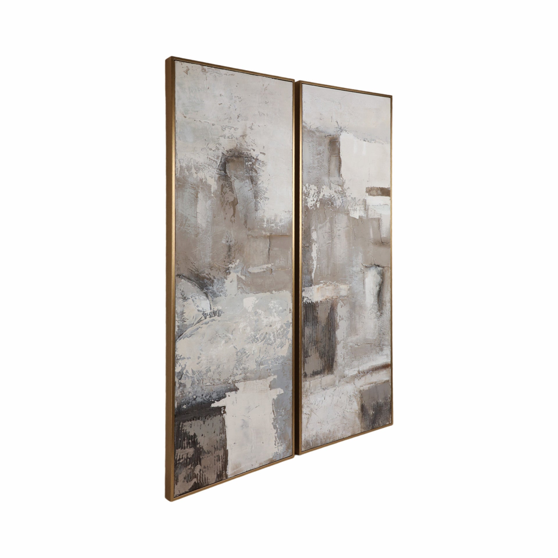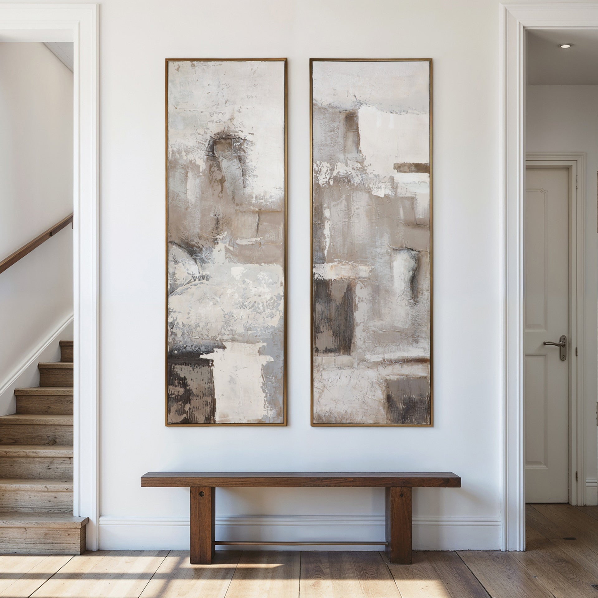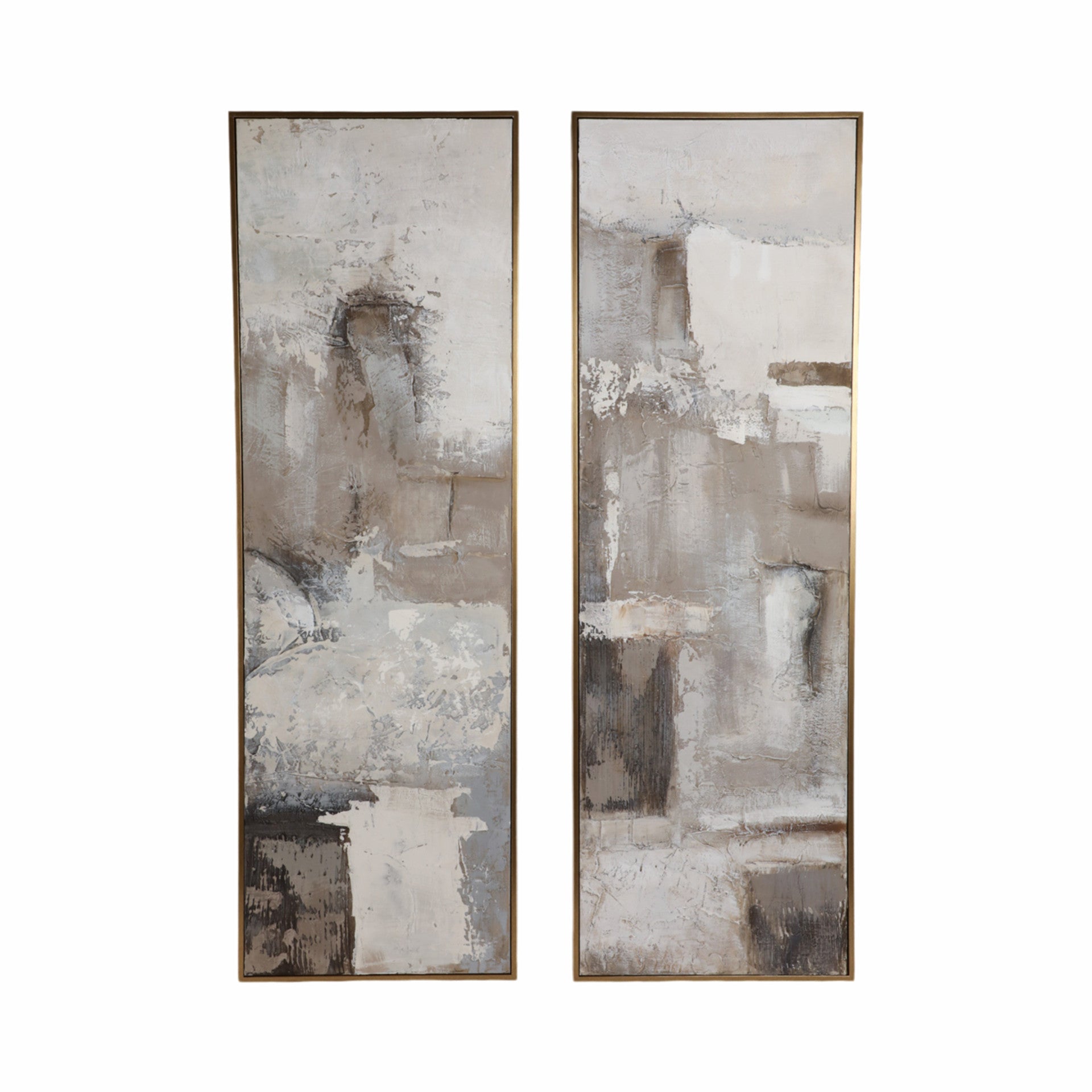 Hermoso juego de 2 cuadros pintados a mano, técnicas mixtas. Enmarcado. Cada módulo mide 51cm x 152cm.