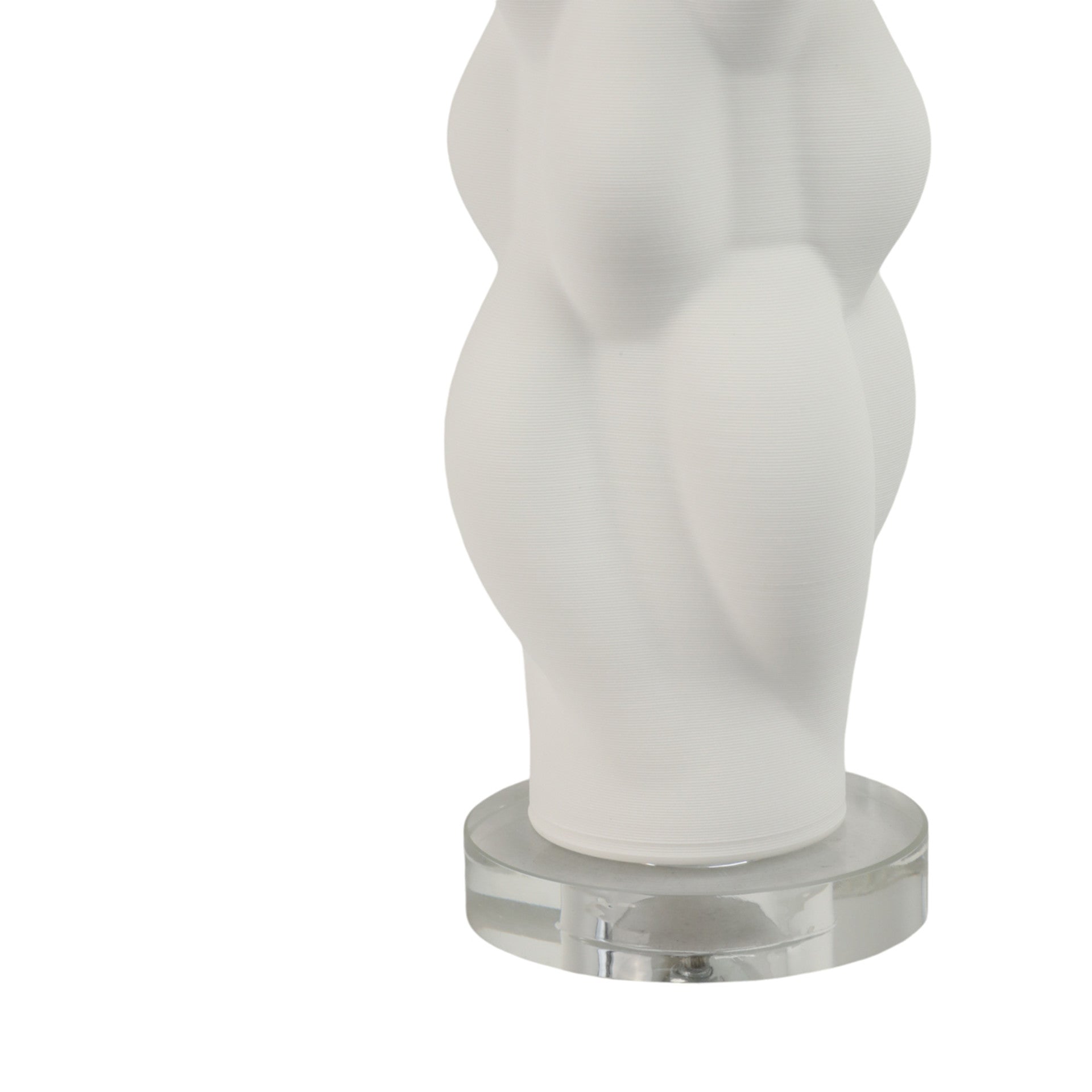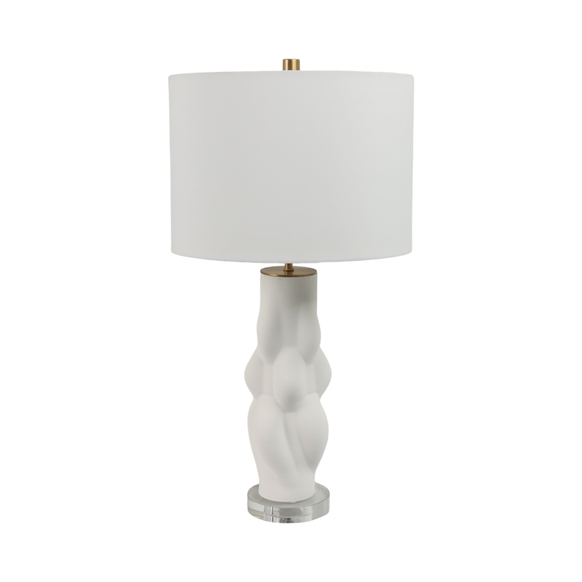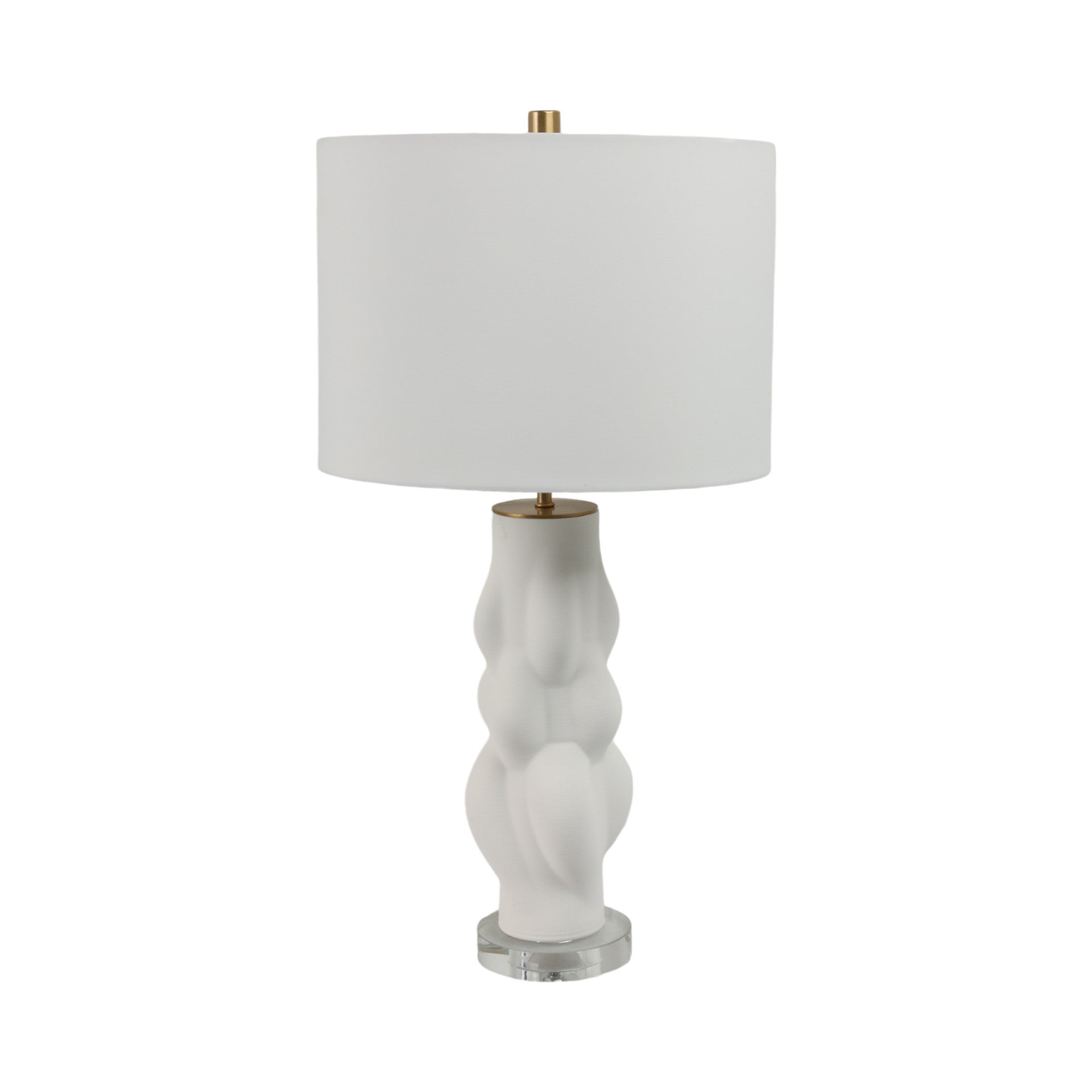 Moderna lámpara de porcelana con su base de vidrio.. Altura máxima es de 66cm y el ancho máximo es de 35.5cm