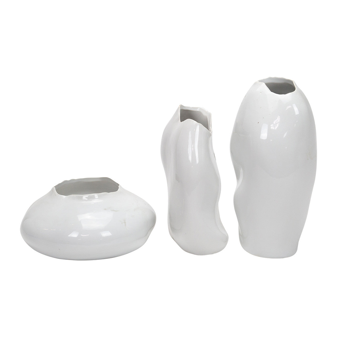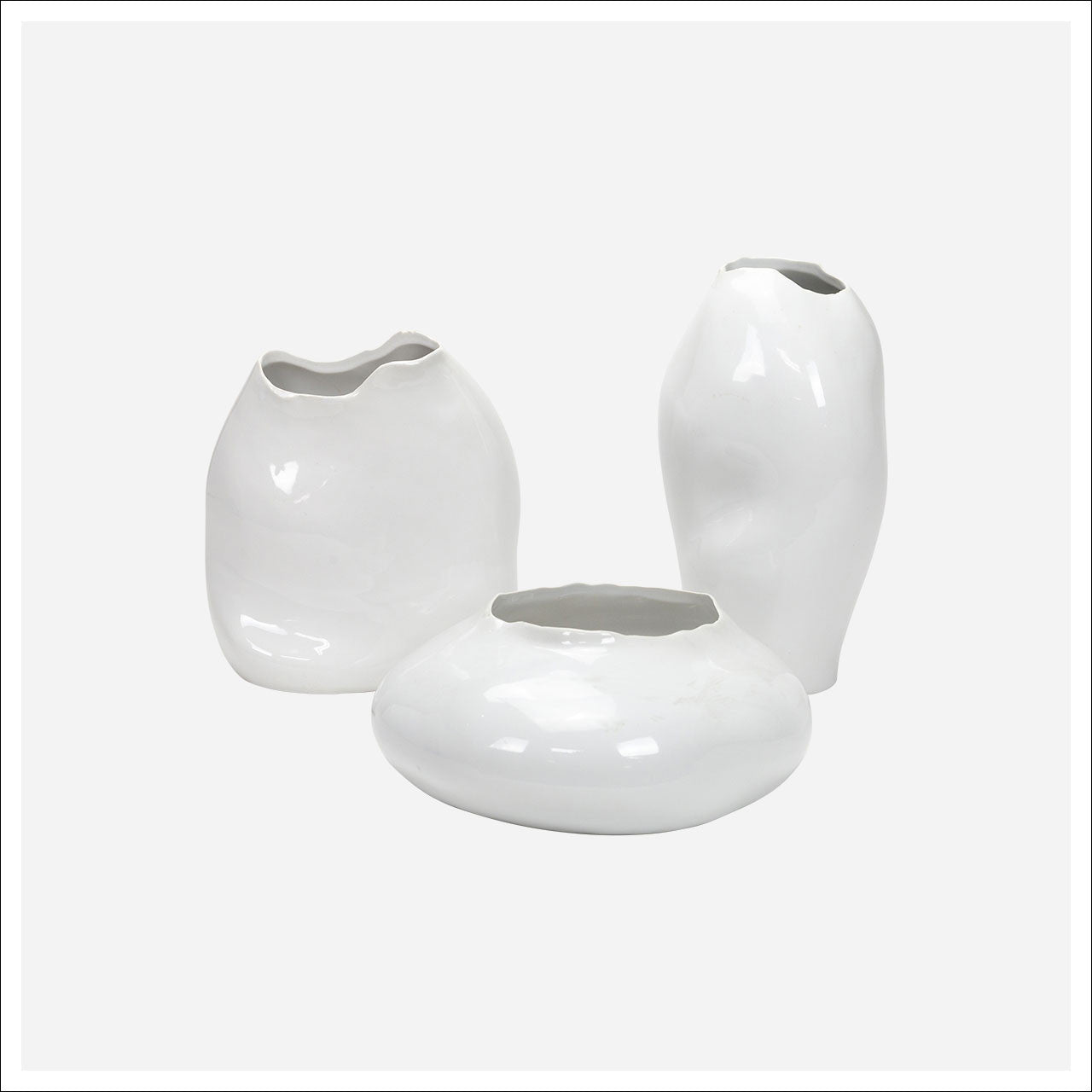 Precioso set de 3 floreros de cerámica blancos brillantes. las alturas de cada uno son: 10cm, 21.5cm, 26.6cm