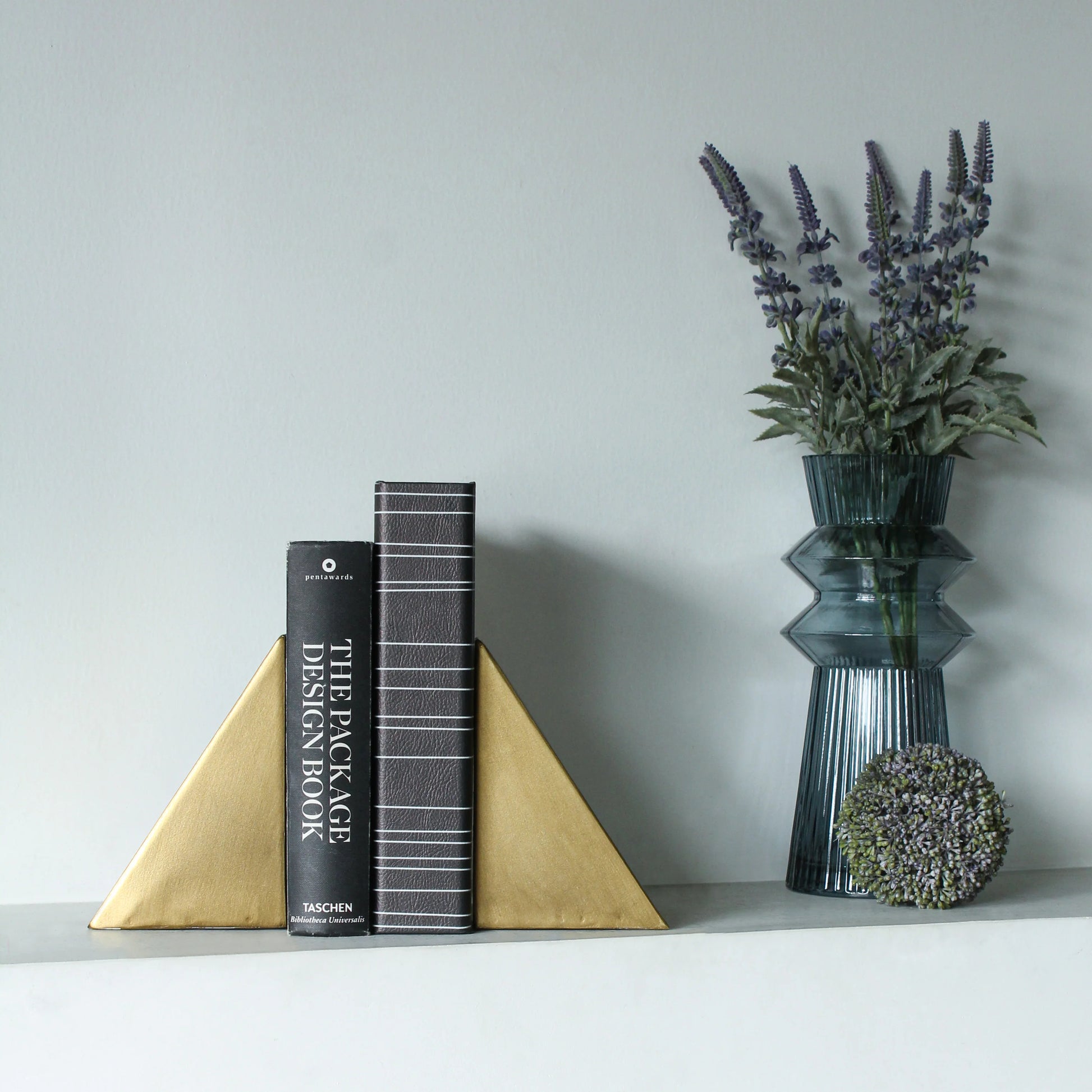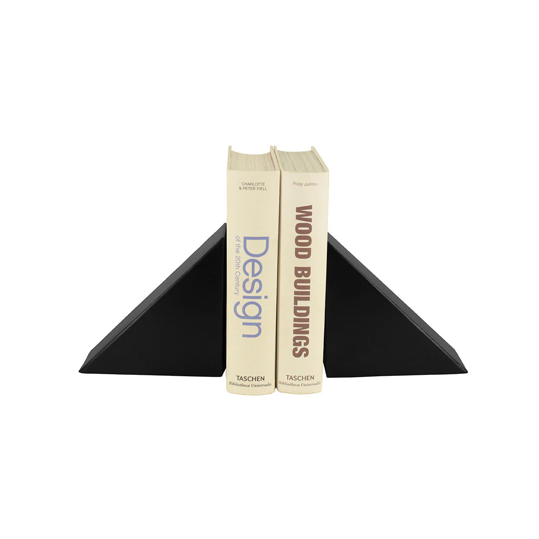 Moderno juego de sujetalibros de metal color dorado y en color negro. 15cm de alto los dorados. 13.5cm de alto los negros.