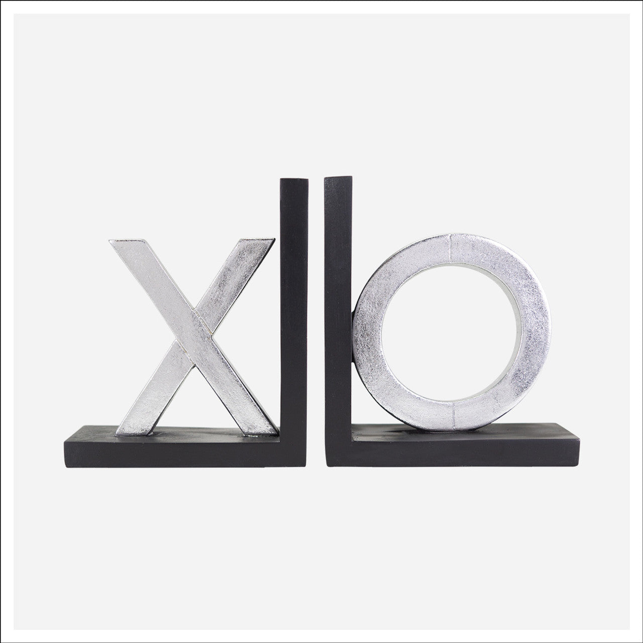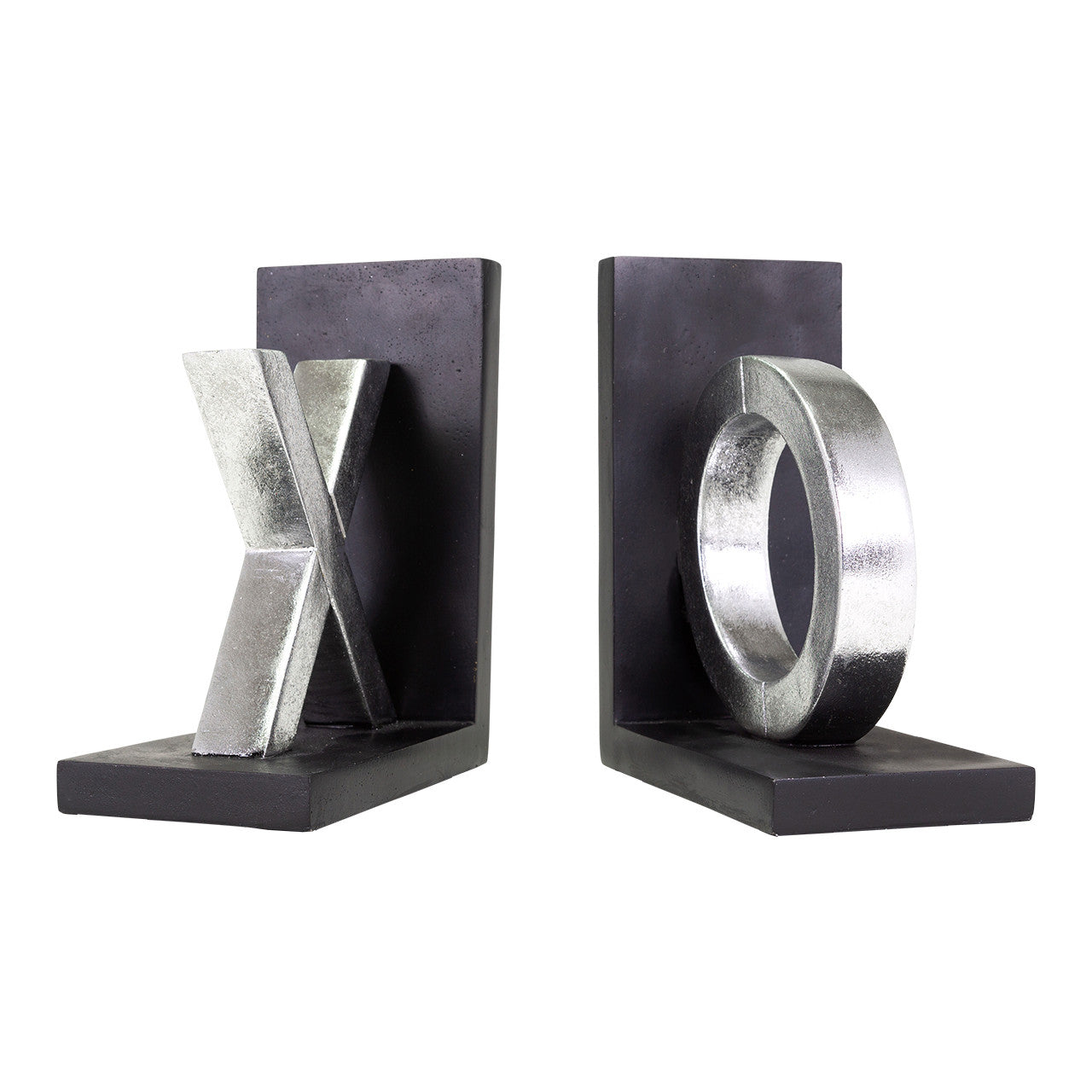 Moderno juego de sujetalibros negro y plateado. Resina. 16.5cm x 7.6cm x 14cm